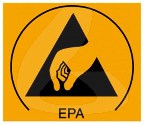 25x30mm-es figyelmeztető címke ESD jellel és "EPA" felirattal. 50db címke / tekercs